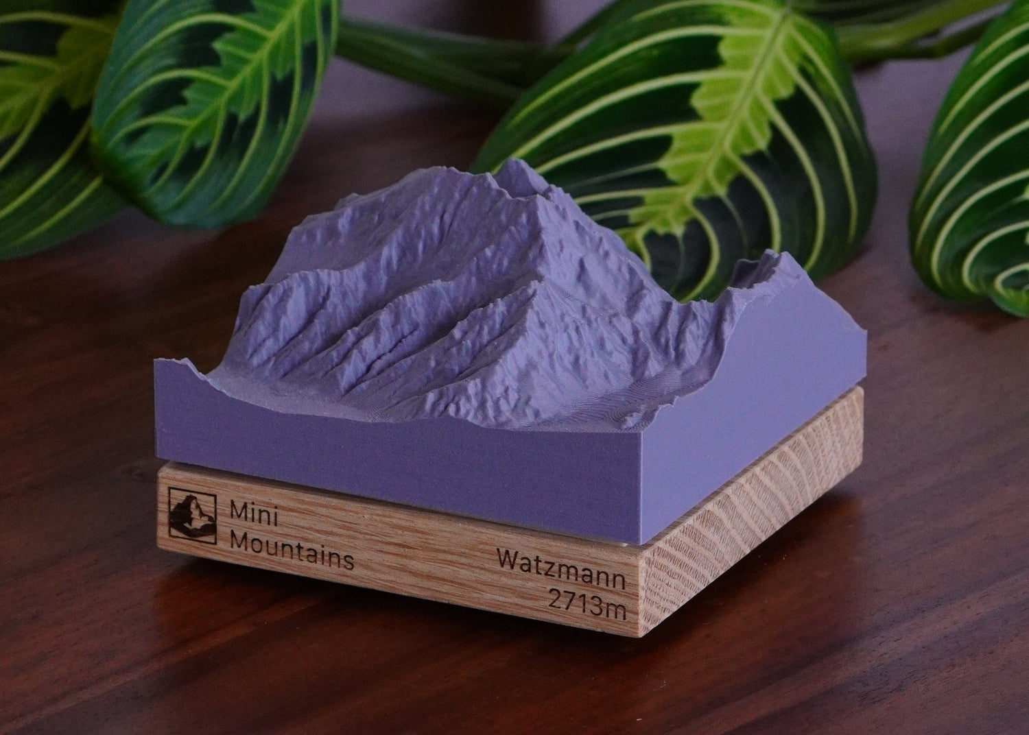 Entdecke die Welt der Mini Mountains und gestalte deinen persönlichen Lieblingsberg als detailgetreues 3D-Reliefmodell. Unsere handgefertigten Bergminiaturen aus biologisch abbaubarem PLA Kunststoff sind perfekt für Naturliebhaber. Wähle aus unserer exklusiven Bergkollektion, darunter das Matterhorn, die Zugspitze oder das Nebelhorn, oder nutze unseren innovativen Berg-Konfigurator, um deinen Wunschberg direkt in 3D zu visualisieren. Jedes Bergrelief wird auf einem hochwertigen Holzsockel mit präziser Lasergravur präsentiert. Egal ob kleines Bergmodell oder personalisiertes Bergrelief – bei uns findest du das perfekte Design. Ideal als Geschenk für Wanderfreunde, Bergsteiger oder Mountainbiker, die die Faszination der Berge lieben.